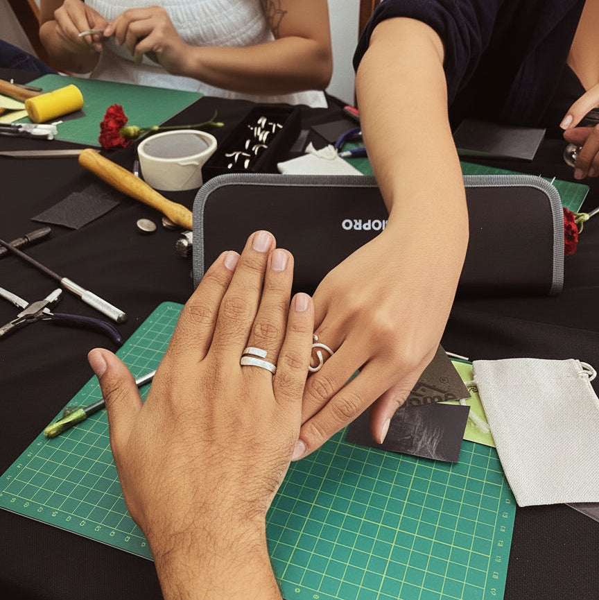 Este taller está diseñado para que vivas la experiencia de hacer tu propia joya de plata, mientras te invito a desconectar de lo cotidiano y a disfrutar del proceso artesanal y de tu propio proceso creativo.