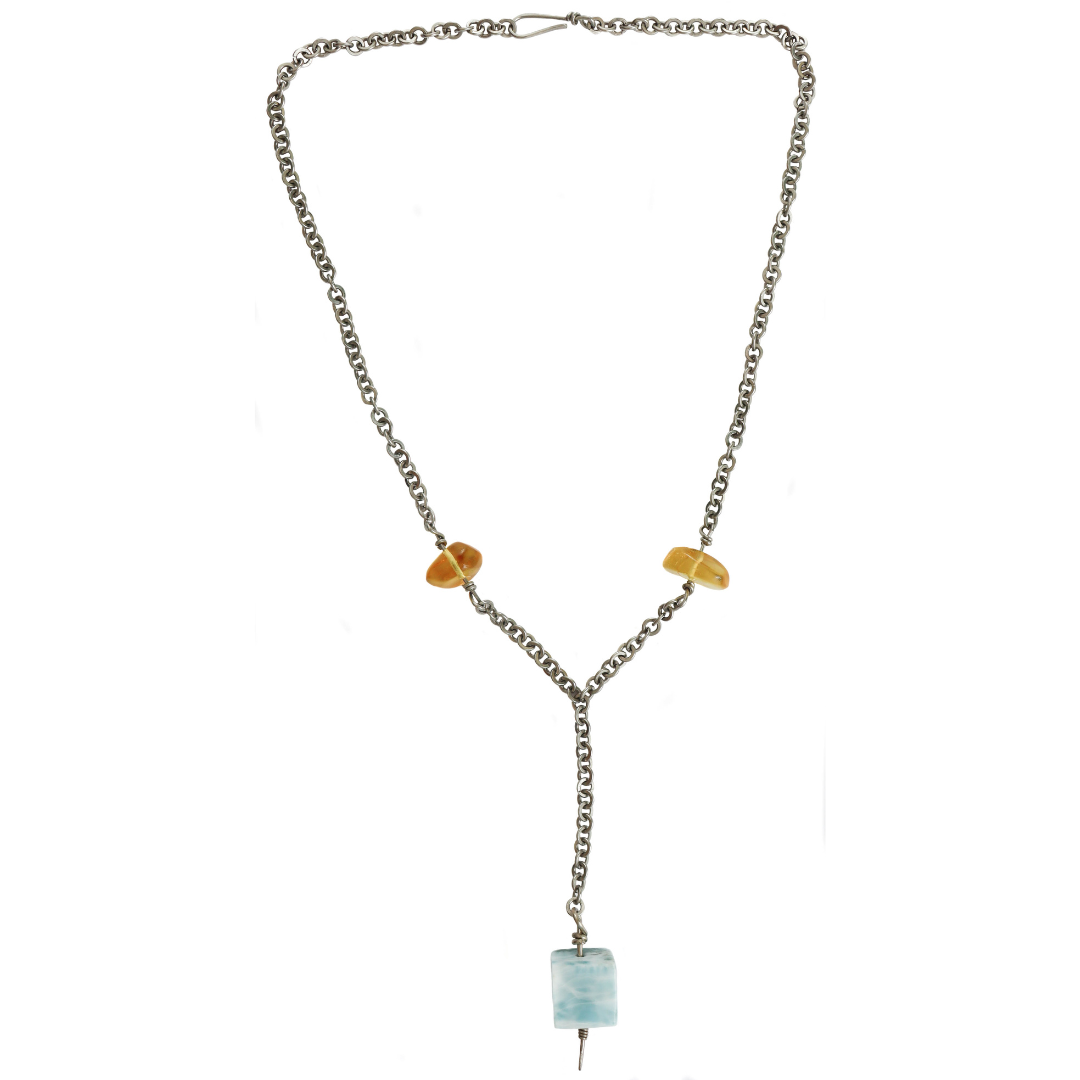 La combinación del ámbar y el larimar crea una fusión única de energías que te invita a conectarte con tu interior. El collar Marlar te recordará la importancia de encontrar armonía en tu vida.