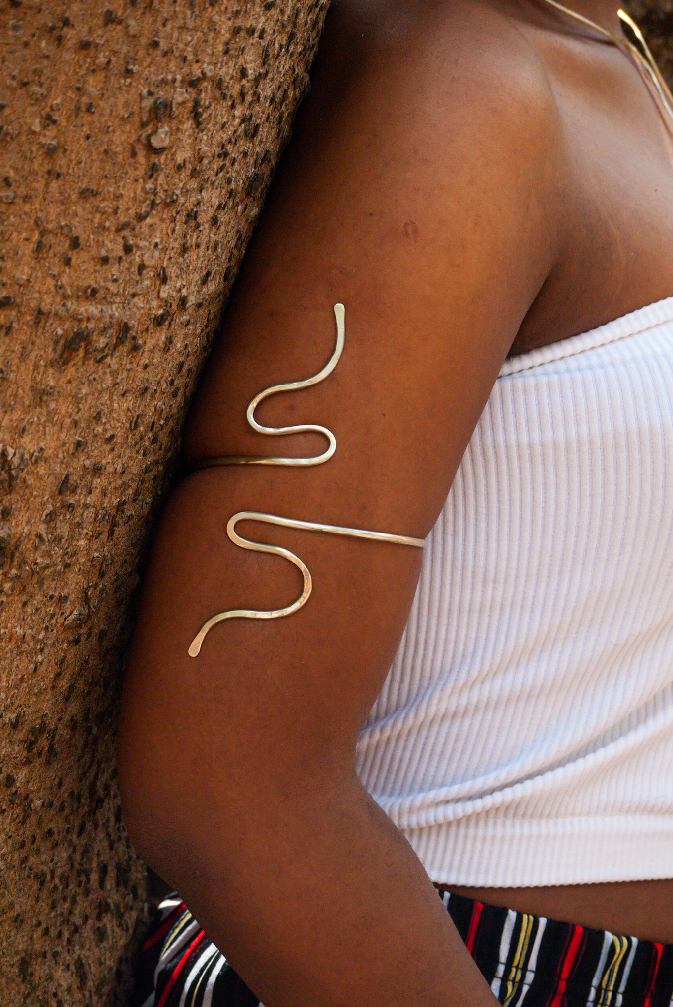 Con la misma majestuosidad que emana de la serpiente, este brazalete forjado artesanalmente protagonizará con carácter todos tus eventos.