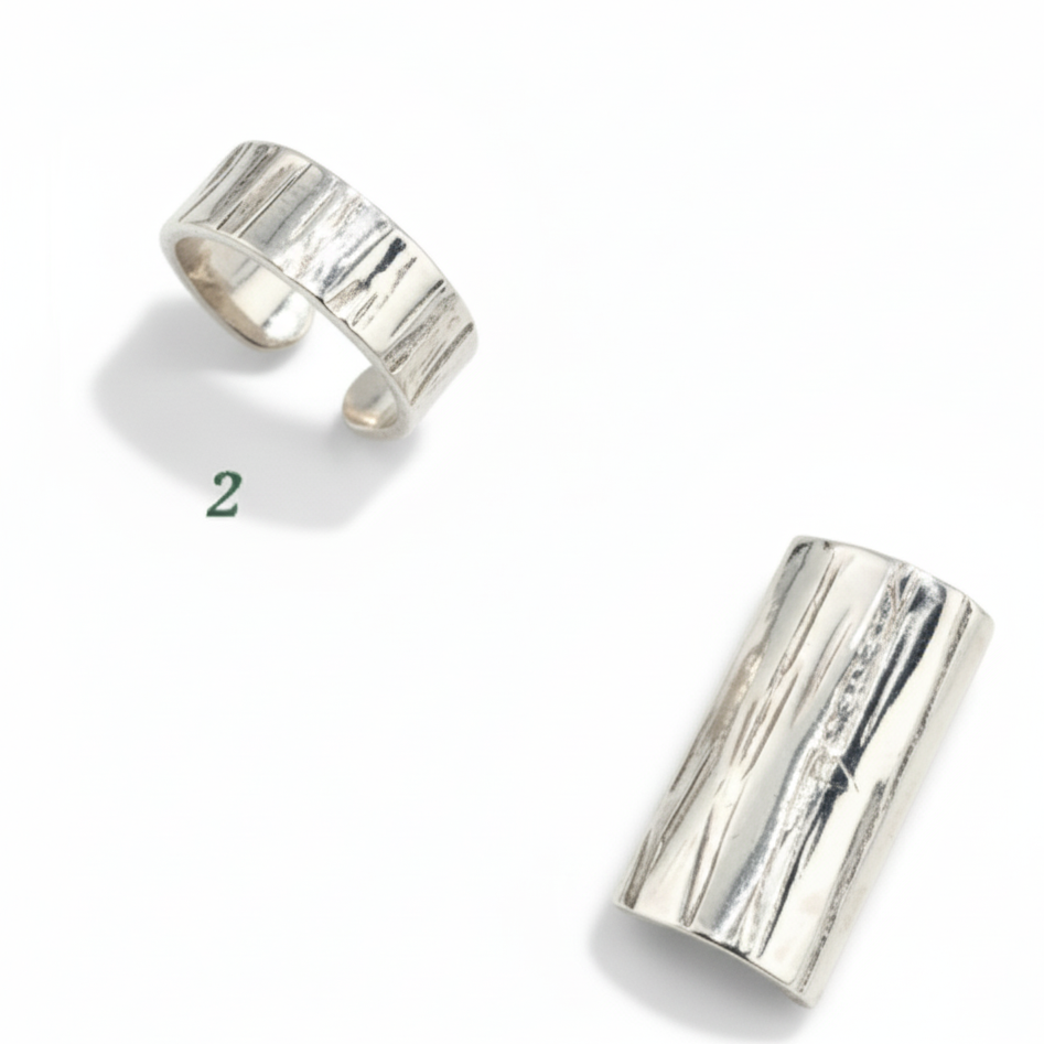 Como un trazo en la piel que no impone su presencia, Surco Earcuff se posa, con una textura orgánica o un liso espejo, siempre dejando su huella artesanal.